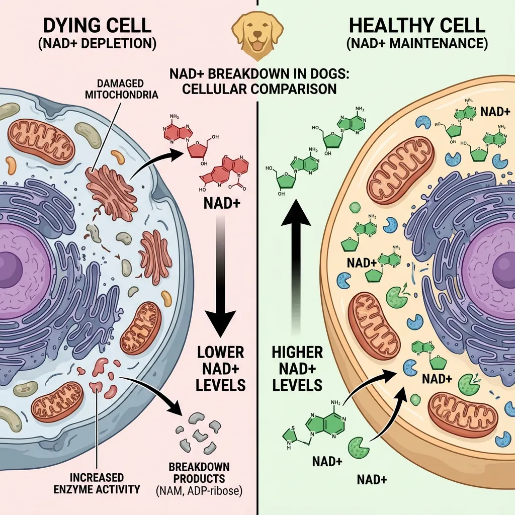 Your dog isn't aging because of their breed, size, or bad luck. They're aging because their cells are running out of NAD+—the master molecule that controls how fast the biological clock runs.