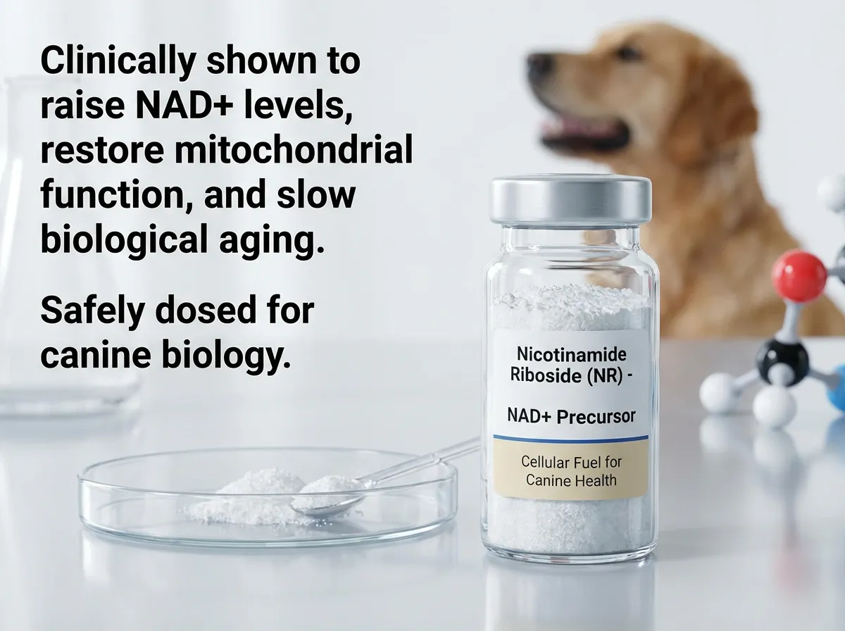 This isn't some cheap supplement with unproven ingredients. NR is clinically shown to raise NAD+ levels, restore mitochondrial function, and slow biological aging in mammals—including dogs.