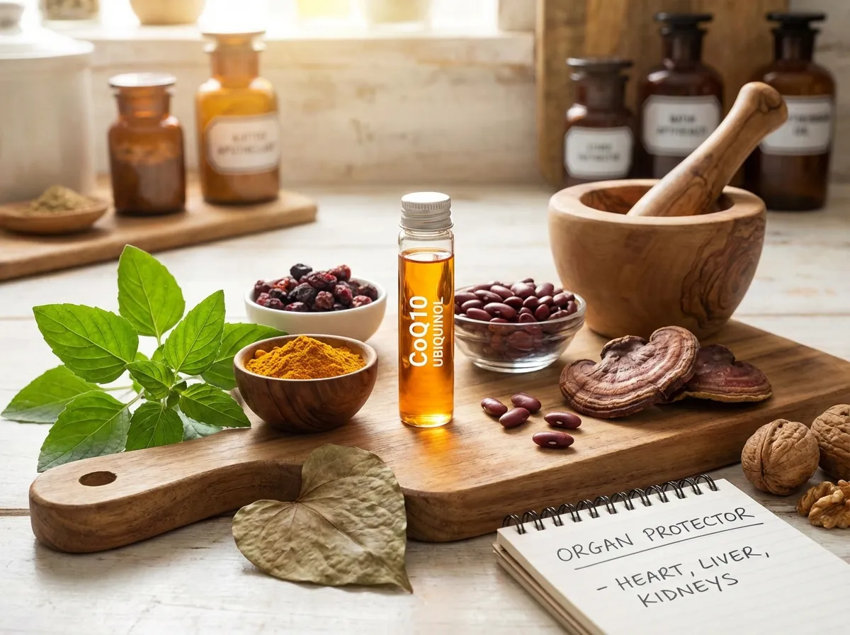 Protects heart, liver, and kidneys from age-related decline. Essential for cellular energy production and preventing oxidative damage to vital organs.